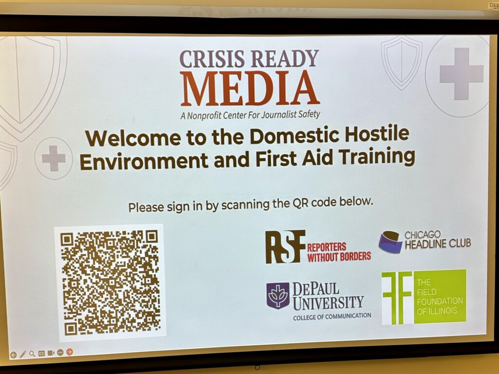 Additional thanks to DePaul University for hosting the training and to Reporters Without Borders for expanding ongoing support for participating journalists and providing attendees with first-aid kits.